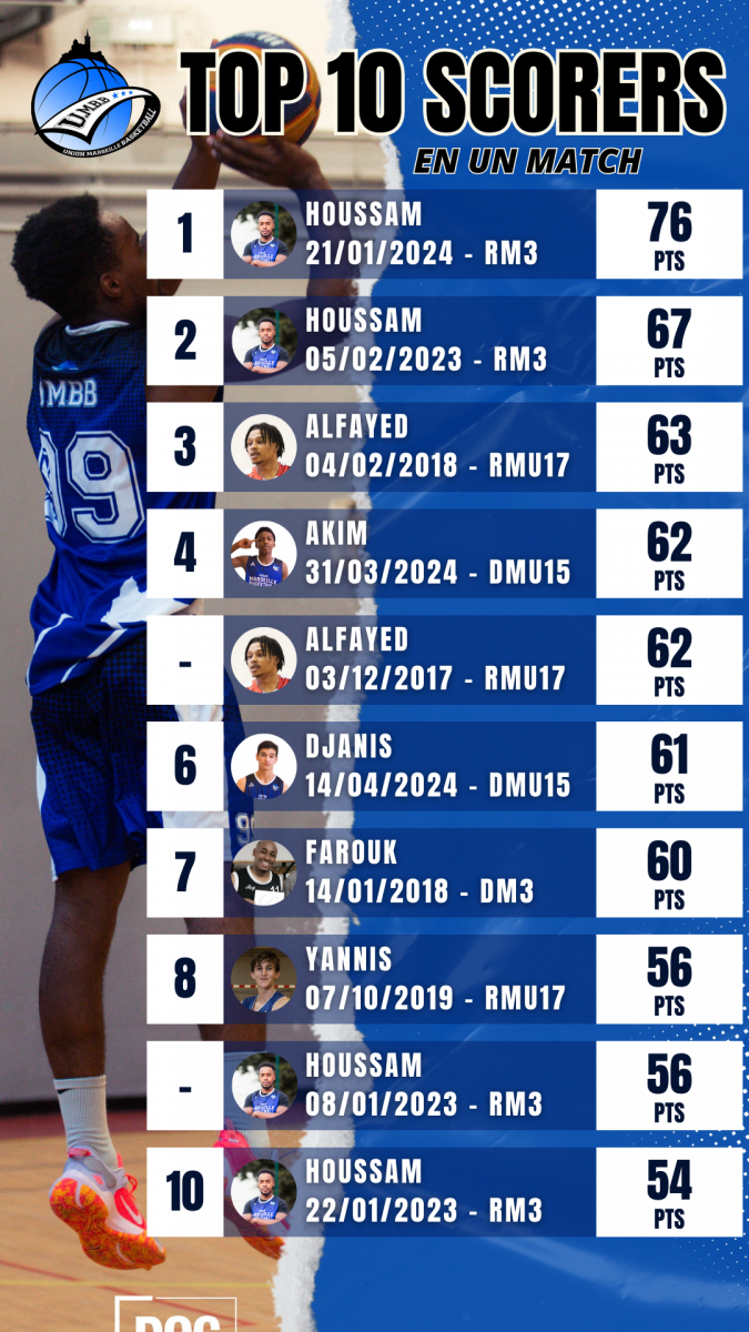 l'Union Marseille Basketball. Cette performance remarquable a été réalisée sous les yeux de ses aînés et prédécesseurs au classement, notamment