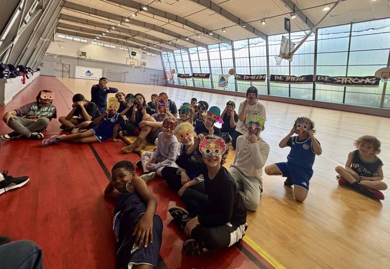 Les enfants ont pu faire du basket chaque journée en y mélangeant des actions environnementales (clean challenge) des jeux créatifs (confection de masque de carnaval), ainsi que des jeux participatifs.